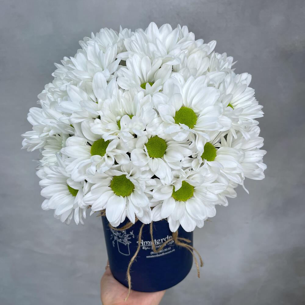 Нежная композиция стойких хризантем. Стильный подарок-комплимент по любому поводу. В подарок маме, сестре, коллеге, девушке.