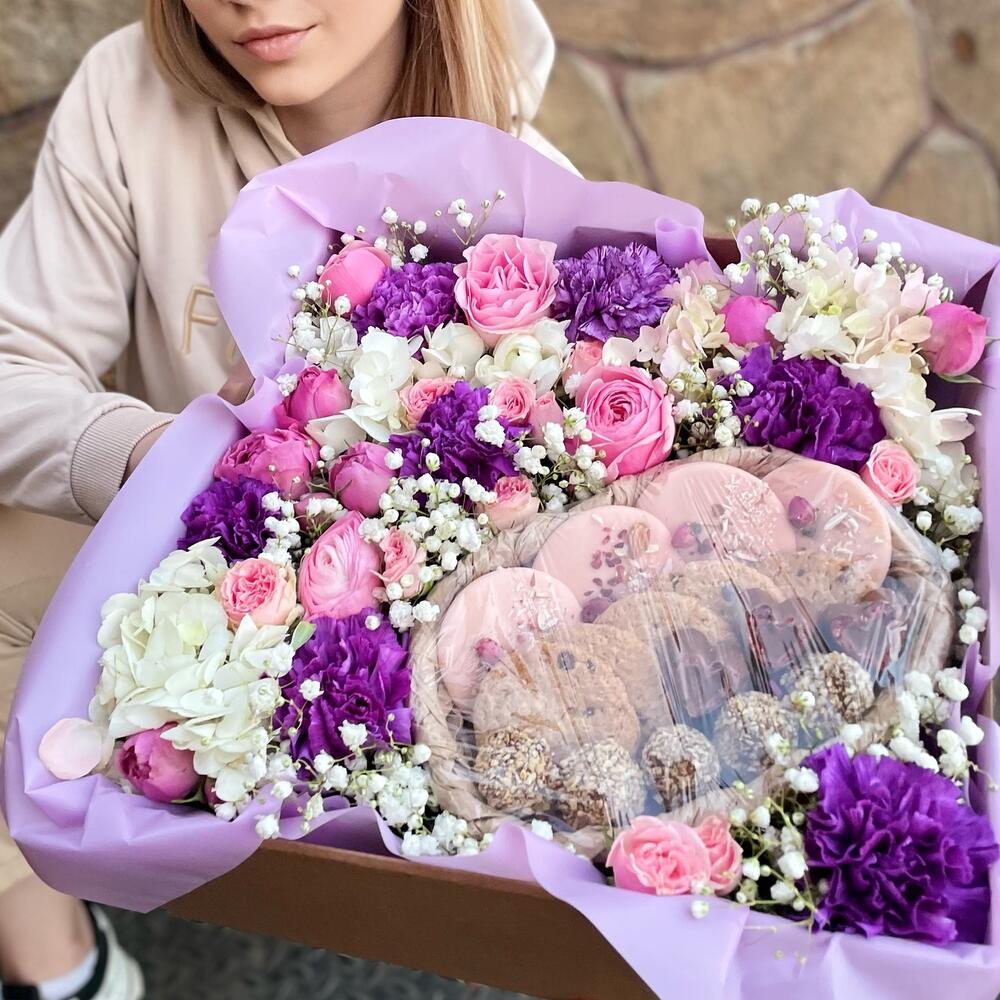 Коробка с цветами и авторскими сладостями в Гулькевичах